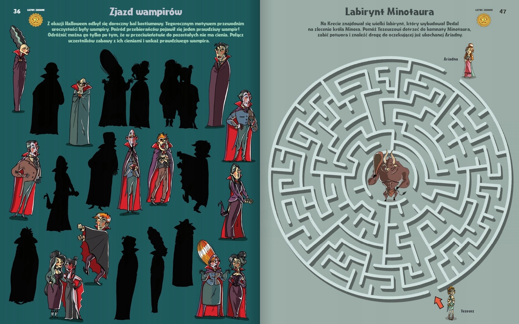 Można tu znaleźć wszystkie typy zabaw ulubione przez dzieci - labirynty, szukanie różnic, łączenie par, dobieranie pasujących elementów, rysowanie i kolorowanie, a także krzyżówki, łamigłówki logiczne i szyfry. Zadania prezentują trzy stopnie trudności, a więc każde dziecko znajdzie coś dla siebie. A wszystko to w oszałamiającej rozmachem i kolorami oprawie graficznej przygotowanej przez niezrównaną graficzkę, Nikolę Kucharską.