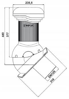 Kompletny kominek Wirovent Pro regulowany (0-50 st.) nieocieplony o średnicy kanału wentylacyjnego 125 mm. Na blachy trapezowe T-35. Z odprowadzeniem kondensatu (skroplin) na zewnątrz, z wbudowaną poziomicą do ustawienia kominka w pionie.