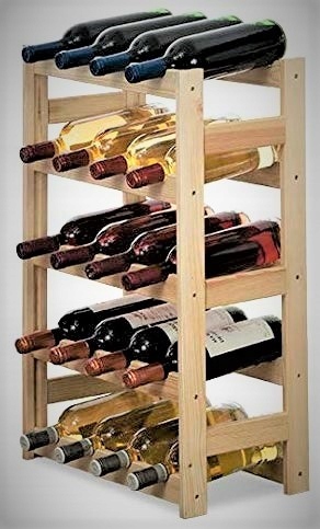 Деревянный винный шкаф изготовлен из натурального соснового дерева. Дерево-ничто пропитанный, он имеет здоровые узлы, которые придают мебели естественный и теплый вид. Поверхность стеллаж гладкий. Он оснащен полками, приспособленными для хранения бутылок. На книжном шкафу вмещает 20 бутылок вина или других. Стеллаж сконструирован так, чтобы бутылка с вином лежала слегка наклонена к пробке, так что в бутылках не будут происходить процессы химическая.