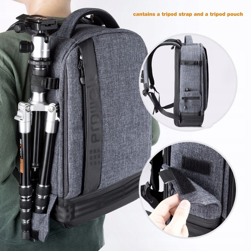 Мульти рюкзак PROWELL с символом DC22095, предназначенный для камеры, фотоаксессуаров и ноутбук размером до 13,3”. Очень хорошо сшитый и разработанный рюкзак, он сделан из прочный и водостойкий материал-нейлон. Внутри рюкзака есть мягкие отсеки (на липучке), вмещающие 2 камеры и объективы, с помощью которых вы можете отделите упакованные внутри вещи в любой конфигурации, сетчатый карман для аксессуары (на молнии) и карман для ноутбука размером до 13,3” (на молнии ремень с липучкой). Основное отделение рюкзака мы можем открыть как чемодан, чтобы у нас было легко доступ ко всему его содержимому. Молния этого отсека спрятана под нагрудниками рюкзака, что имеет влияние на безопасность контента. На передней части рюкзака есть широкий карман для ручной клади вещь. На боковой стороне рюкзака есть крепление, предназначенное для штатива фотографический. Рюкзак имеет прочные, мягкие плечевые ремни с дополнительным ремнем, чтобы застегнуть их, чтобы равномерно распределить вес на плечах и груди во время длительных походов, иудобная ручка для переноски рюкзака в руке. Prowell DC22095 - это не просто фотографический рюкзак, вы можете настроить его интерьер по своему желанию. Он может использоваться как для переноски камеры фотографии, аксессуары и ноутбук, или как обычный рюкзак для ежедневного использования или упаковать одежду для короткой поездки.