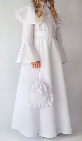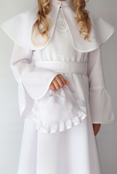 • Komplet składa się: z alby,pelerynki,szarfy oraz torebki (wianek nie wchodzi w skład kompletu)
