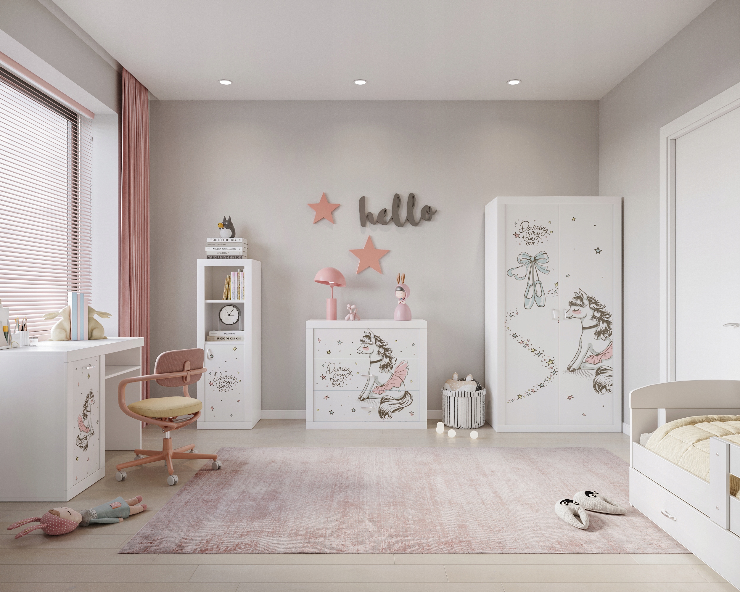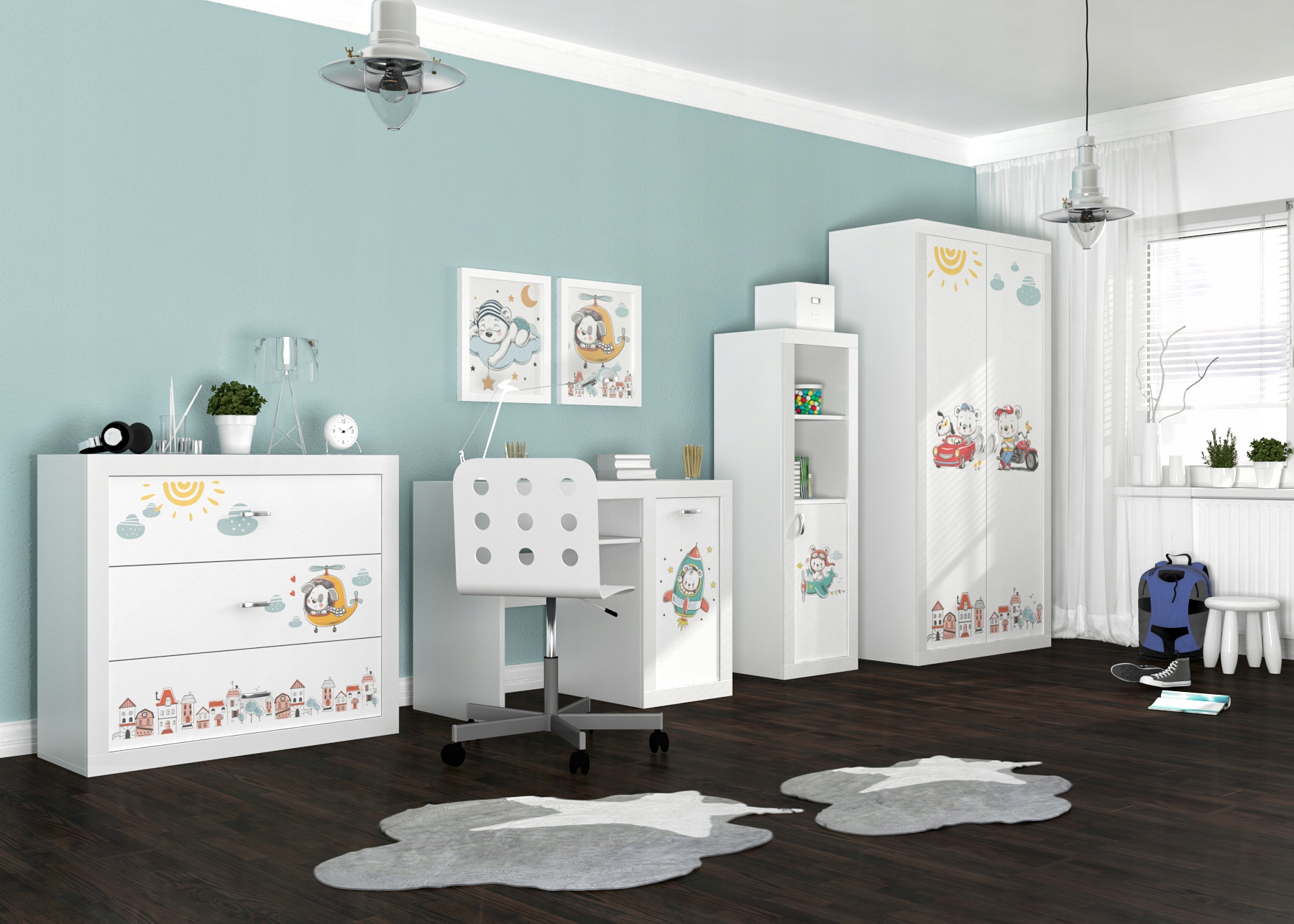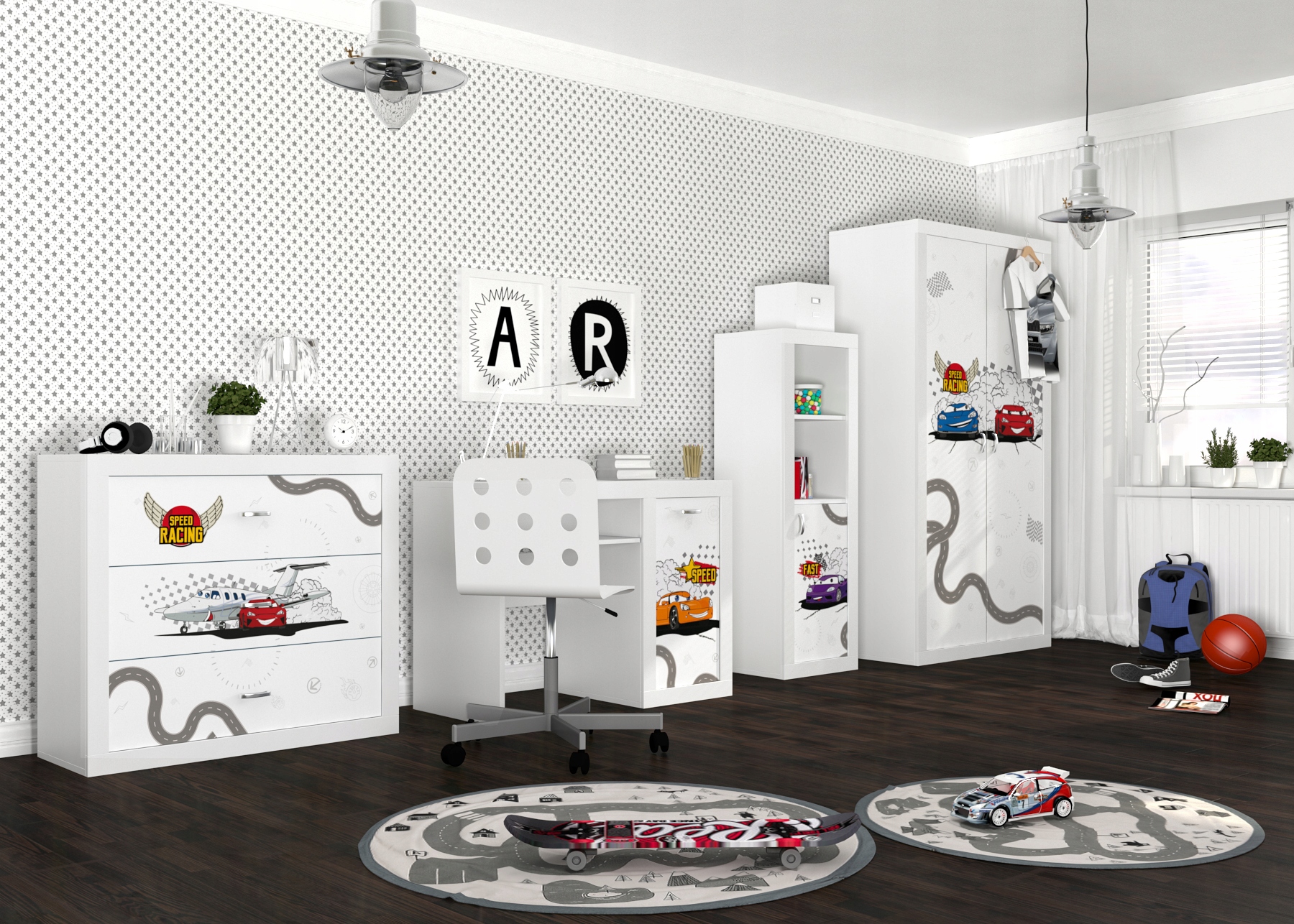 Современный, функциональный и вместительный набор, который найдет свое место как в молодежной комнате, так и весело.