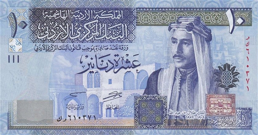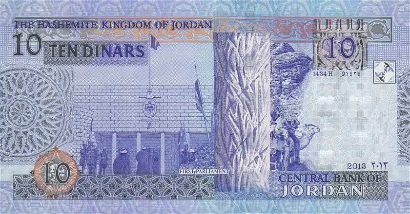 Przepiekny banknot 10 Dinars z Jordania - 2013r. (P-36e) w absolutnie doskonalym stanie bankowym I (UNC).