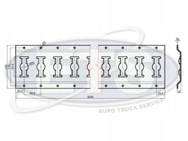Wymiary: Długość 3050 mm Szerokość 132 mm Wysokość 12 mm