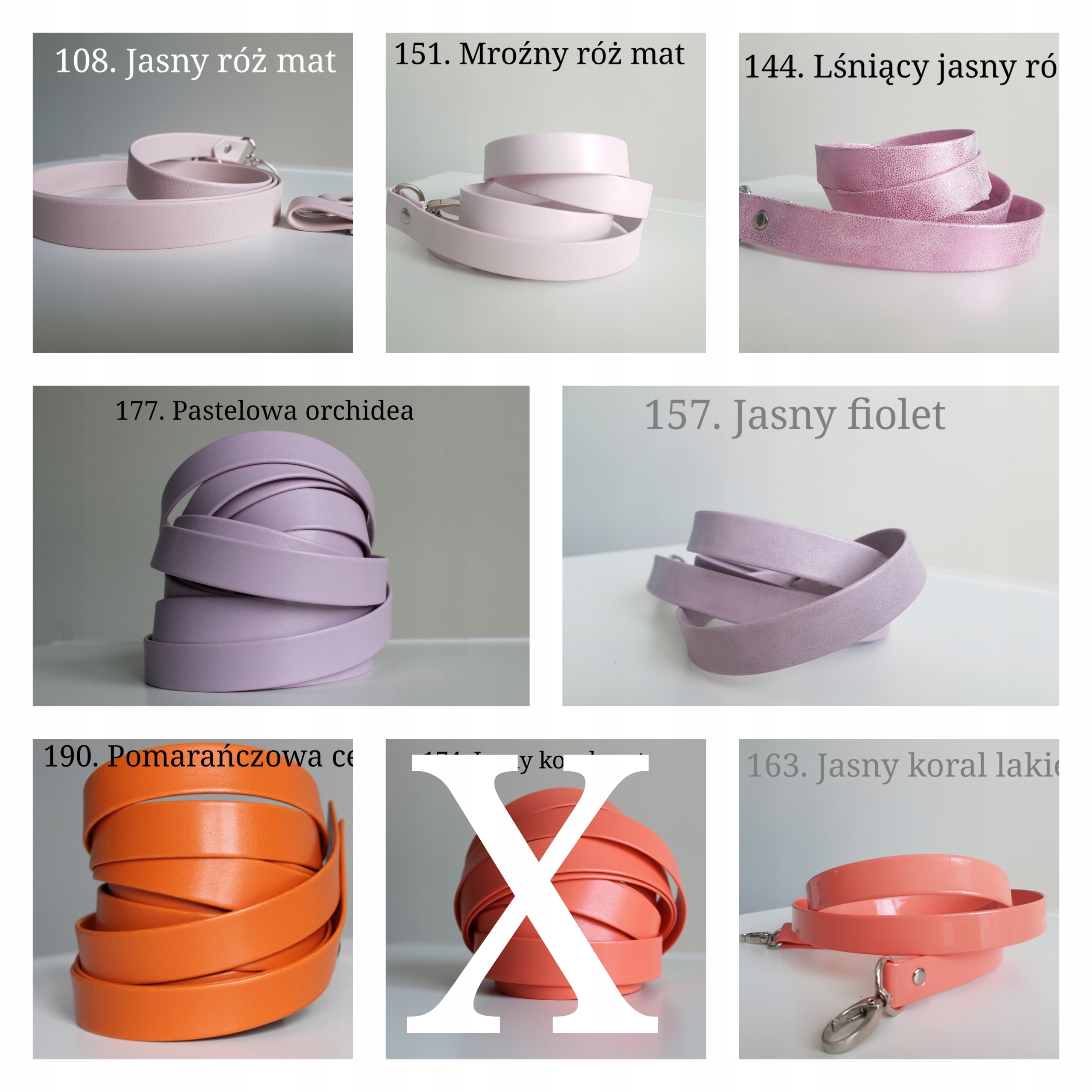 Jeżeli poszukują Państwo również zaczepów potrzebnych do zamocowania paska do torebki, z tworzywa w kolorze paska, na pozostałych naszych aukcjach dostępne są: