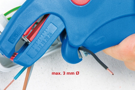 Автоматические плоскогубцы для зачистки обычных плоских проводов от 0,75 до 4 мм2. Плоскогубцы имеют систему, которая автоматически адаптируется к соответствующему поперечному сечению провода, таким образом, позволяет быстро и точно удалить изоляцию, предотвращая повреждение вены. Инструмент отличается простотой использования и плавным механизмом. Легкодоступный боковой нож он интегрирован в инструмент.