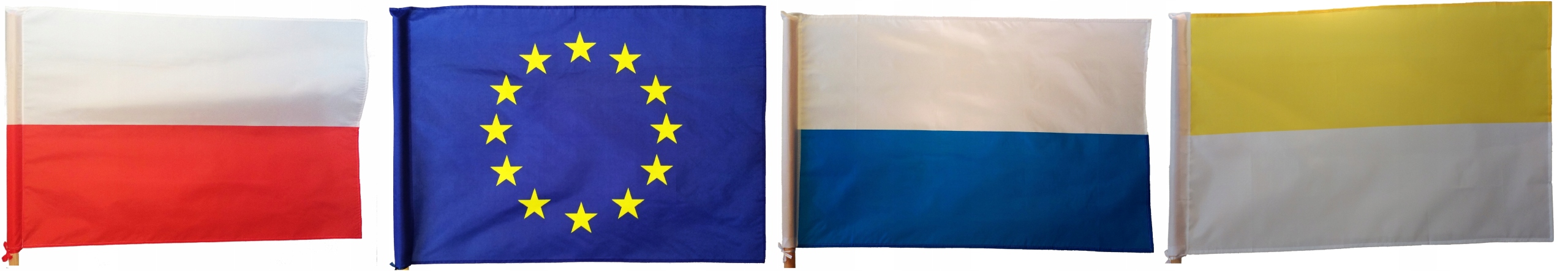 Duża flaga o wymiarach 90x60 cm - w naszej ofercie również inne rozmiary flag Unii jak i również inne flagi: Polski oraz kościelne.