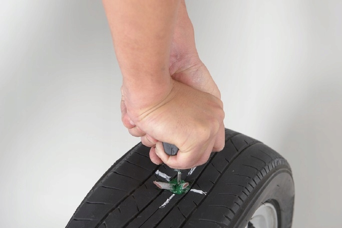 Służy do samodzielnej naprawy przebicia opony bez konieczności demontażu koła.