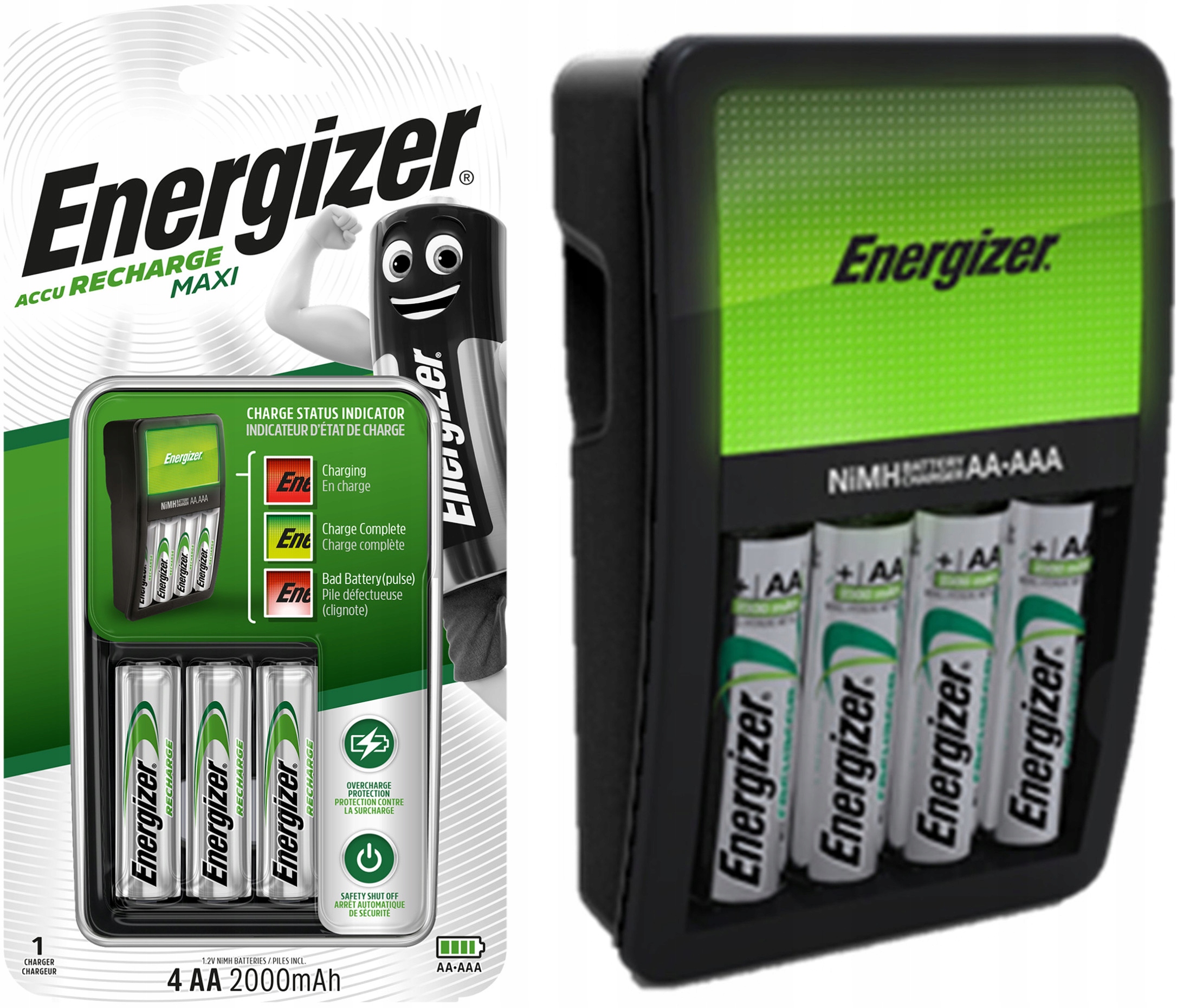 Ładowarka Energizer® Maxi to ładowarka codziennego użytku do akumulatorków zasilających wszystkie niezbędne urządzenia. Wyposażona jest w podświetlenie zmieniające kolor tak, że użytkownik od razu wie, na jakim etapie ładowania są jego akumulatory.