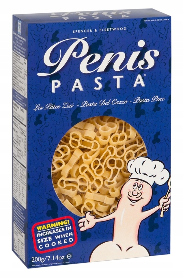 Pasta Penis, jak sama nazwa wskazuje, to produkt dużego kalibru. Makaronowe penisy świetnie prezentują się na talerzu.