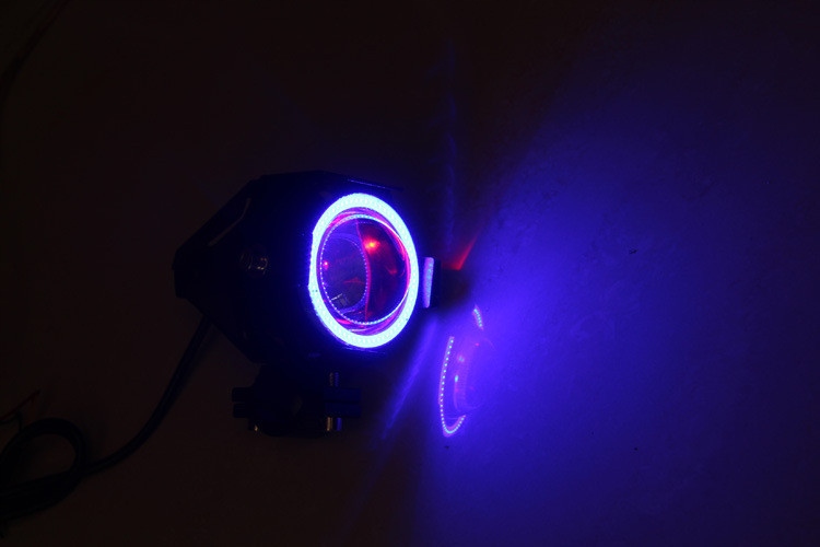 Мотоцикл светодиодные фары с белым или синее кольцо. Наличие ближнего света, дальнего света и стробоскопа дополнительное кольцо синий цвет водонепроницаемый корпус свет мощность 30W