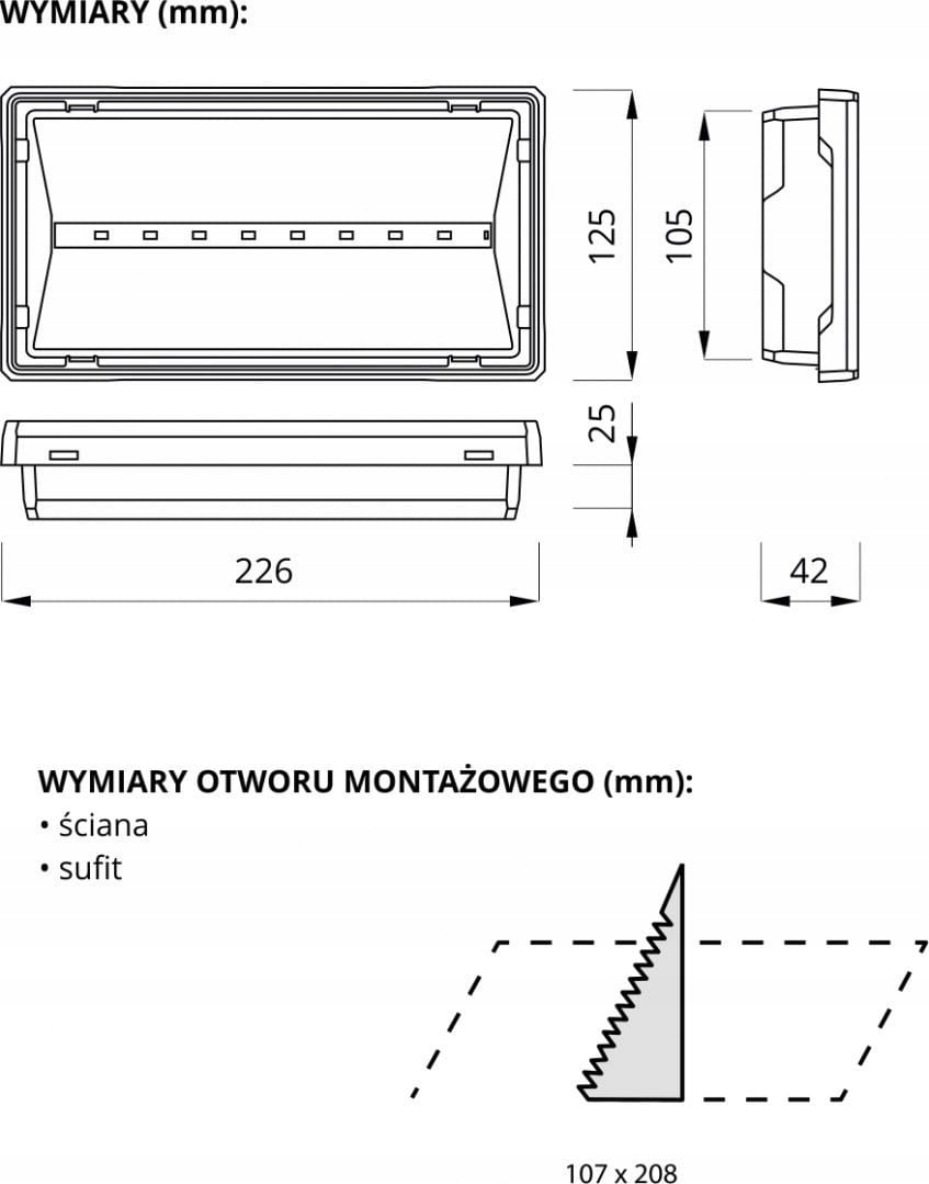 Lampa oświetlenia awaryjnego i ewakuacyjnego wykonana w technologii LED o stopniu szczelności IP65. Przeznaczona do oświetlania pomieszczeń podczas awarii i wyznaczania dróg ewakuacyjnych.