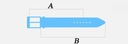 B: общая длина ремня без пряжки (параметр, указанный в списке)
