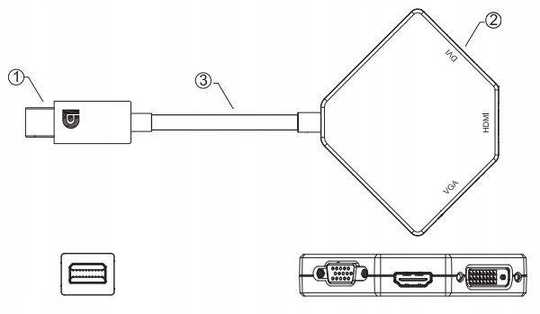 Umożliwia podłączenie urządzeń ze złączami HDMI, VGA lub DVI (np. telewizor, projektor, monitor) do urządzenia ze złączem mini DisplayPort lub Thunderbolt 1 i 2 (np. laptop lub komputer stacjonarny).