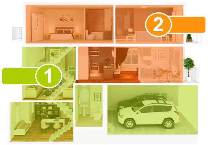 Centrala umożliwia podział systemu na dwie niezależne strefy ochrony, z wyborem trzech trybów czuwania (dzienny, nocny, pełny). Każde wejście może być przypisane do jednego lub obu dozorowanych obszarów. Dzięki temu dostosujesz system do swoich indywidualnych oczekiwań i preferencji.