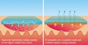 Po stronie lewej, gdy rana pokryta jest opatrunkiem hydrożelowym utrzymane jest wilgotne środowisko. Po stronie prawej, gdy nie ma hydrożelu powstaje strup i procesy naskórkowania przebiegają dwa razy wolniej.