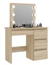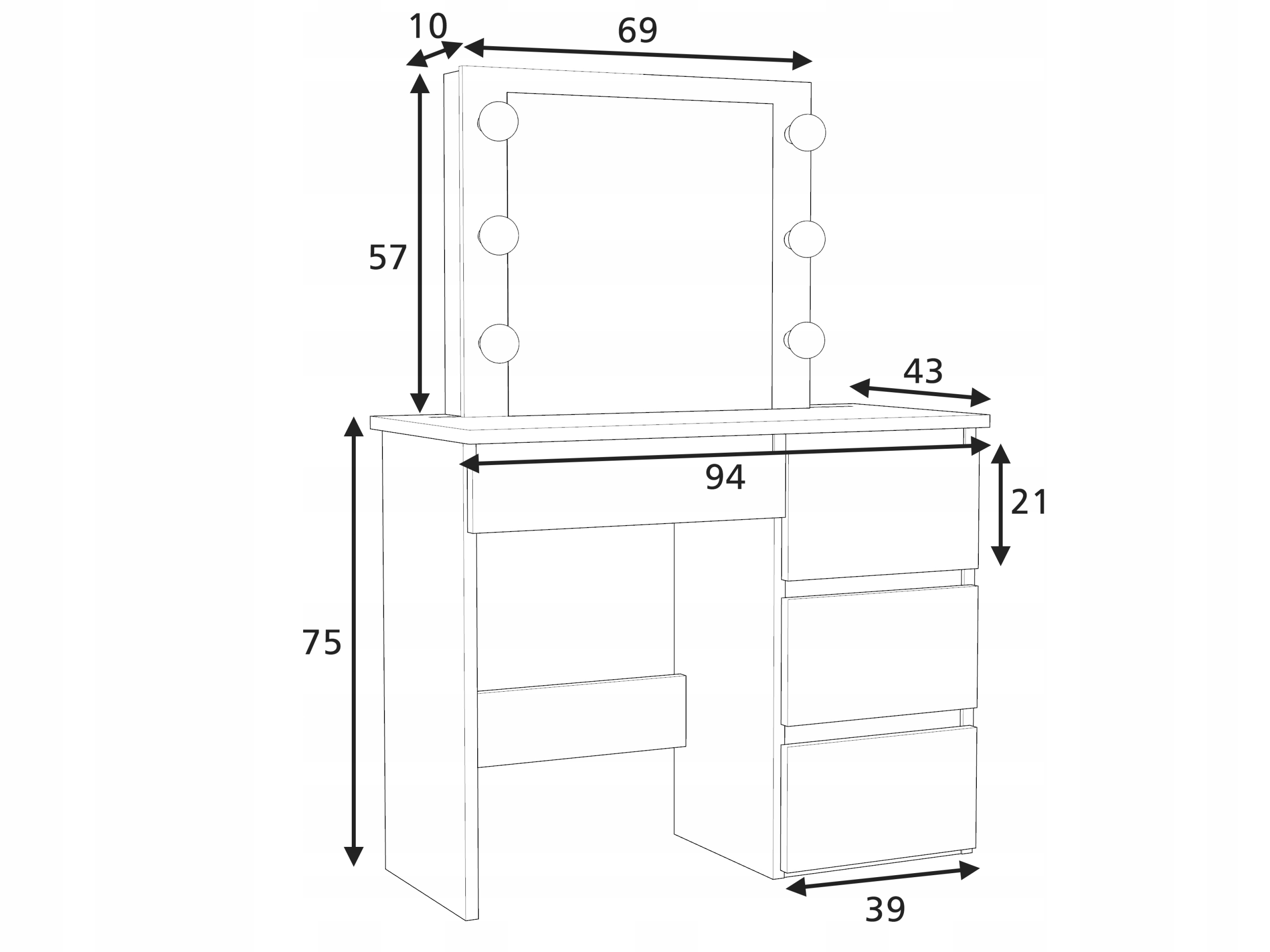 Выключатель света расположен сбоку от зеркала-он интуитивно понятен в использовании, ненавязчиво спрятан. К туалетному столику проложен кабель длиной ок. 180 см с вилкой типа 'plug глубины.