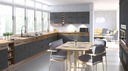 Кухонная мебель Ovido-это коллекция следуя последним тенденциям. текстуре аналогично вставкам на фронтах. открытые шкафы с полками, хозяйственные дымоходы для установки духовки или различные типы шкафов висит. Все для того, чтобы создать неповторимую атмосферу расположения и удовлетворить самые высокие требования.