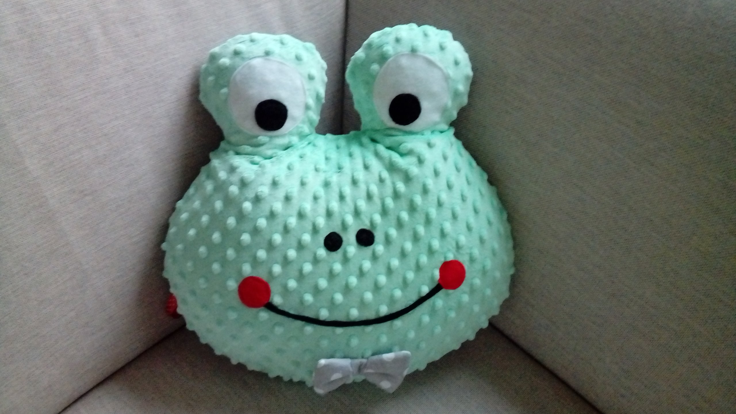 Z dostępnych kolorów bawełny mogą Państwo wybrać swój wzór żaby np. miętowa + białe w grochy