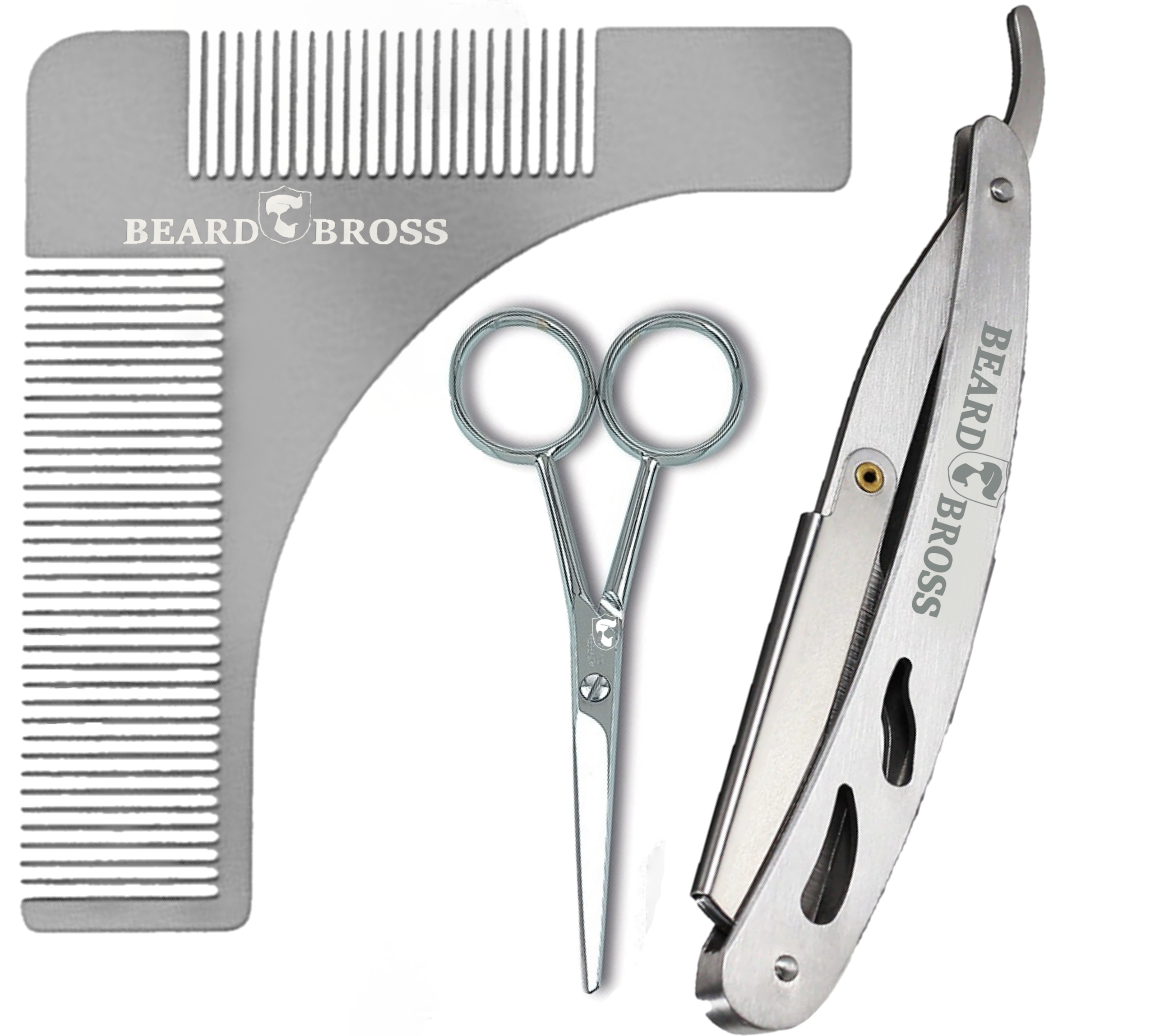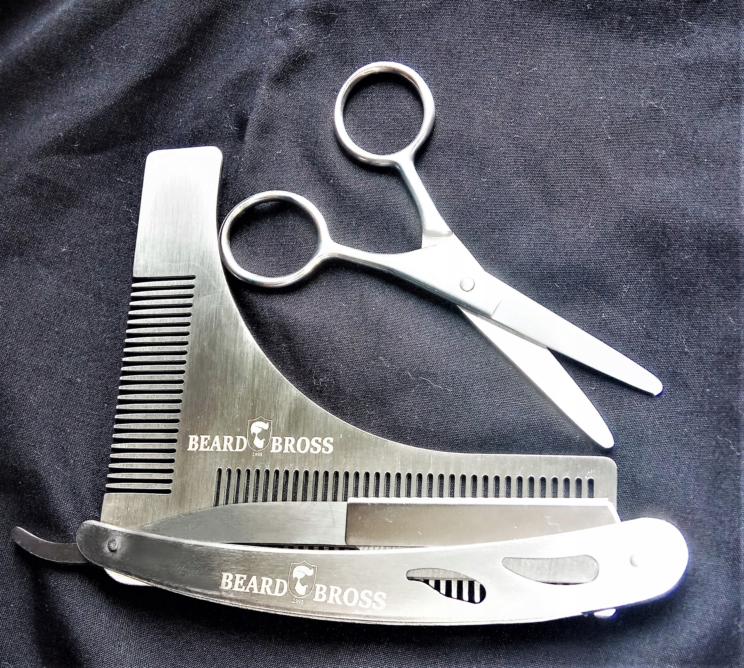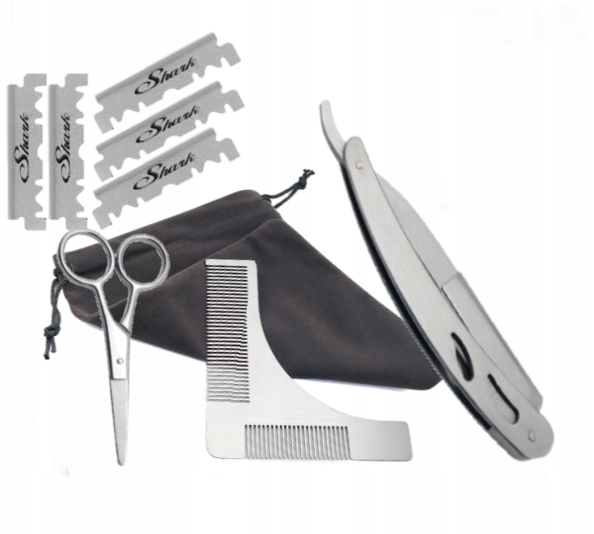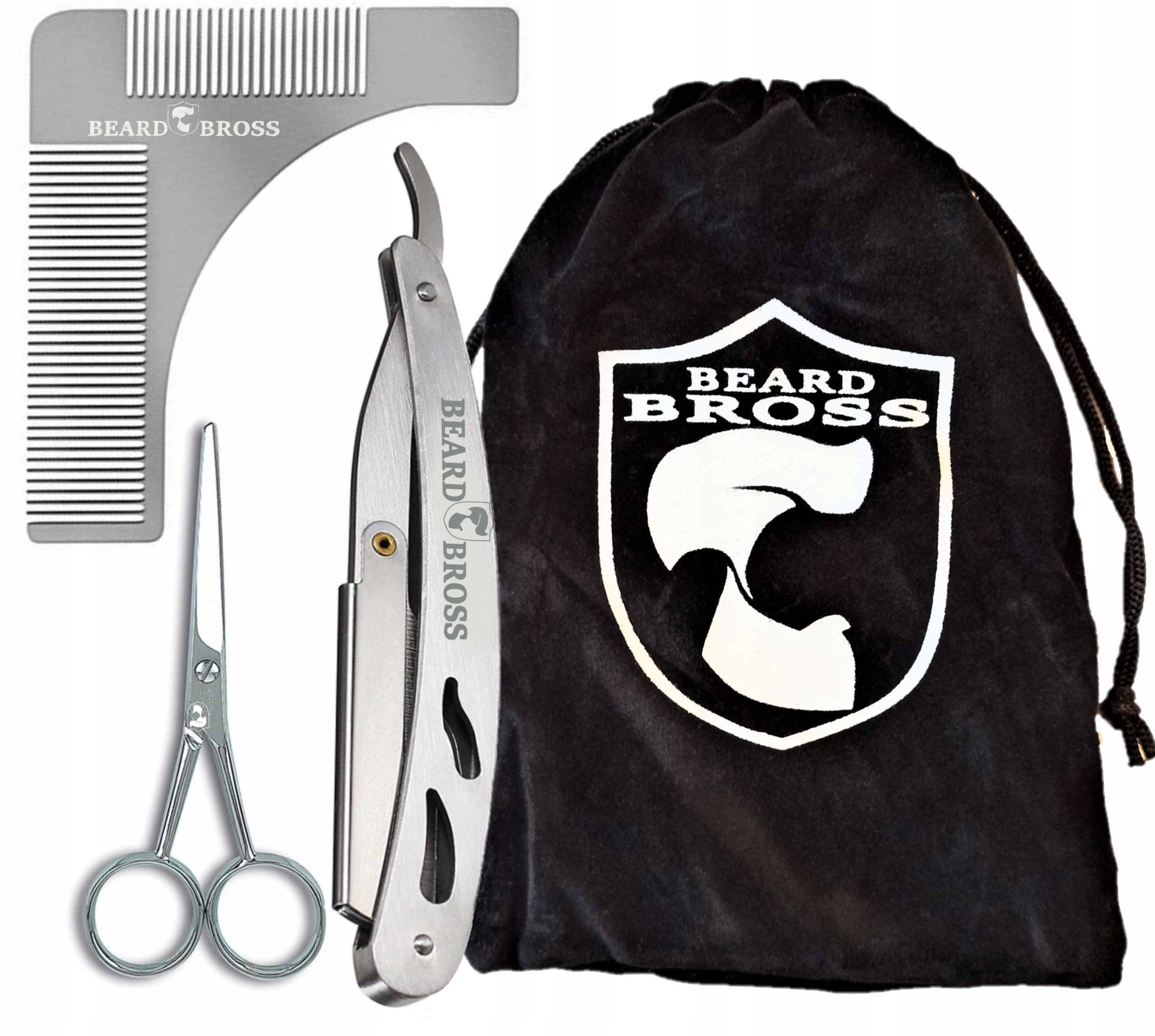 ! Zestaw do pielęgnacji brody BEARD BROSS : brzytwa, nożyczki, szablon, worek, żyletki !