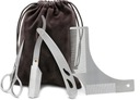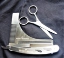 Wzornik wykonany ze stali szczotkowanej pomoże wyregulować idealną linię zarostu. Grzebienie zaś rozczesze każdą splątaną brodę.