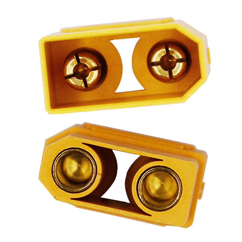 Przedmiotem sprzedaży jest 10 sztuk (5 par) konektora typu XT90. Jest to złącze wysokoprądowe 90A (prąd ciągły), pozłacane. Kolor jasno-pomarańczowy. Zapewnia solidne mechaniczne połączenie. W praktyce wytrzymuje prąd nawet 120A (chwilowy).