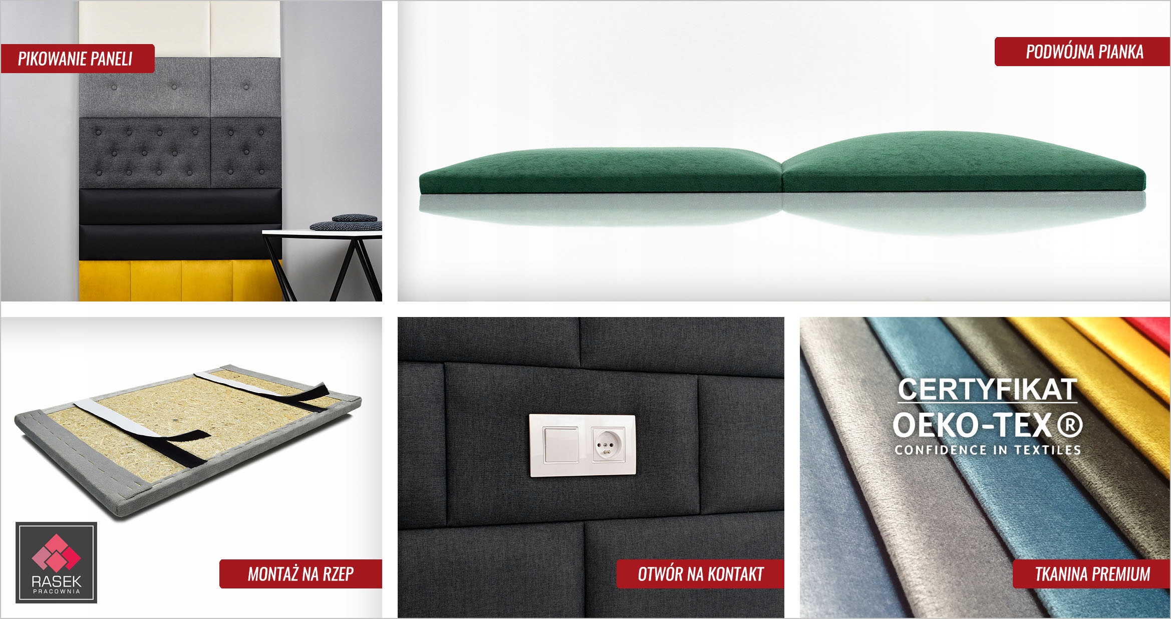 Panel z większą ilością pianki jest bardziej wypukły i miękki, opcja jak najbardziej polecana, jeśli panele mają służyć jako miękkie zagłowie za łóżkiem lub jako siedziska np. do wnęk.
