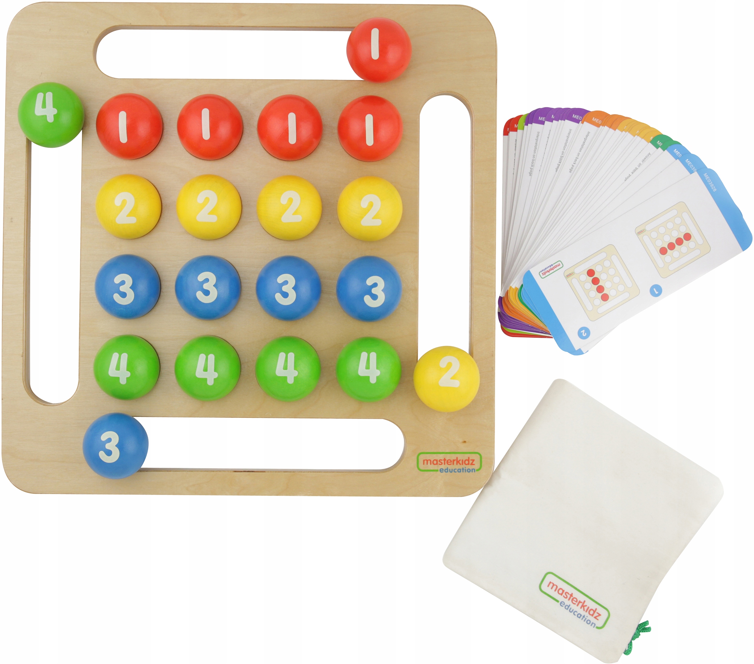 Набор состоит из деревянной доски с отверстиями для шариков, и из 20 цветных деревянных шариков, которые должны быть выложены в соответствующие схемы. Игра содержит 36-страничное руководство, объясняющее правила игры. Инструкция имеет 5 глав из 3 уровни.