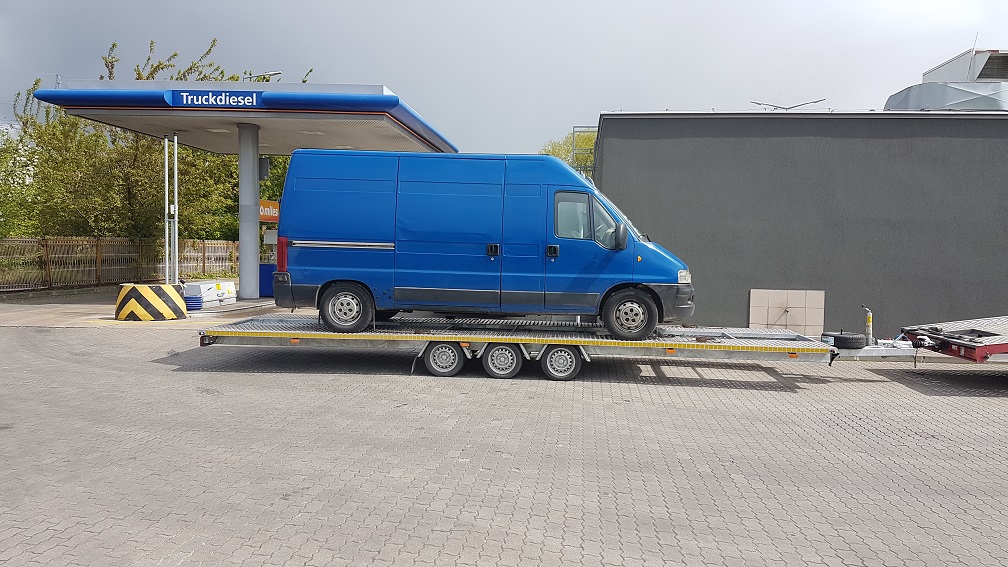Oferujemy lawetę 3 osiową o wymiarach: 2,15 x 8,00 m.