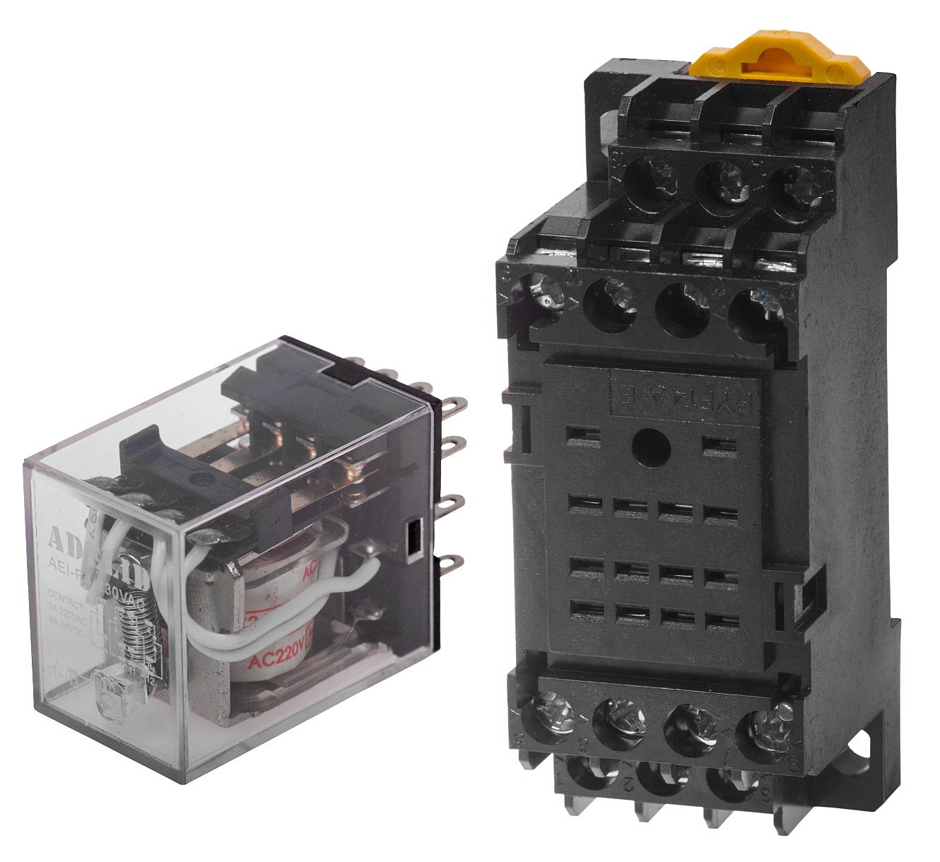реле: катушка 230 В переменного тока, контактная нагрузка-5А, 4 контакта