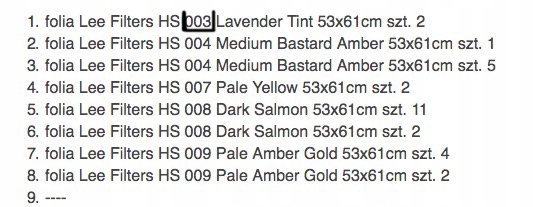 Oferuję arkusze filtrów LEE, poniżej lista dostępnych arkuszy. Wzornik filtrów dostępny jest: