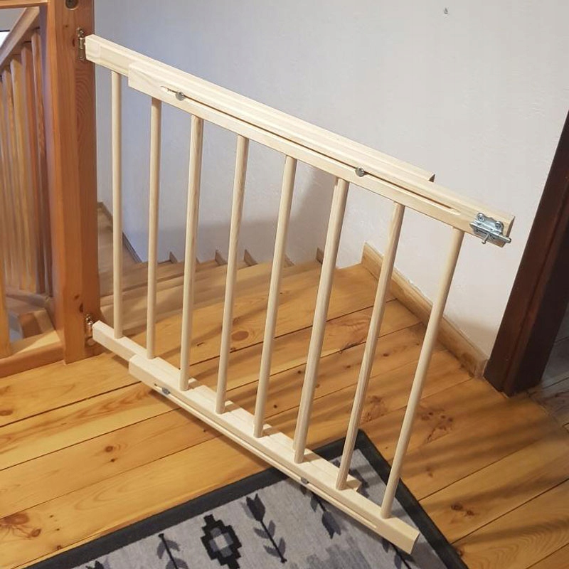 Bramka ochronna została wykonana z drewniana sosnowego najwyższej jakości, jest przykręcana, montowana na zawiasach czopowych (zasada działania identyczna jak przy drzwiach).