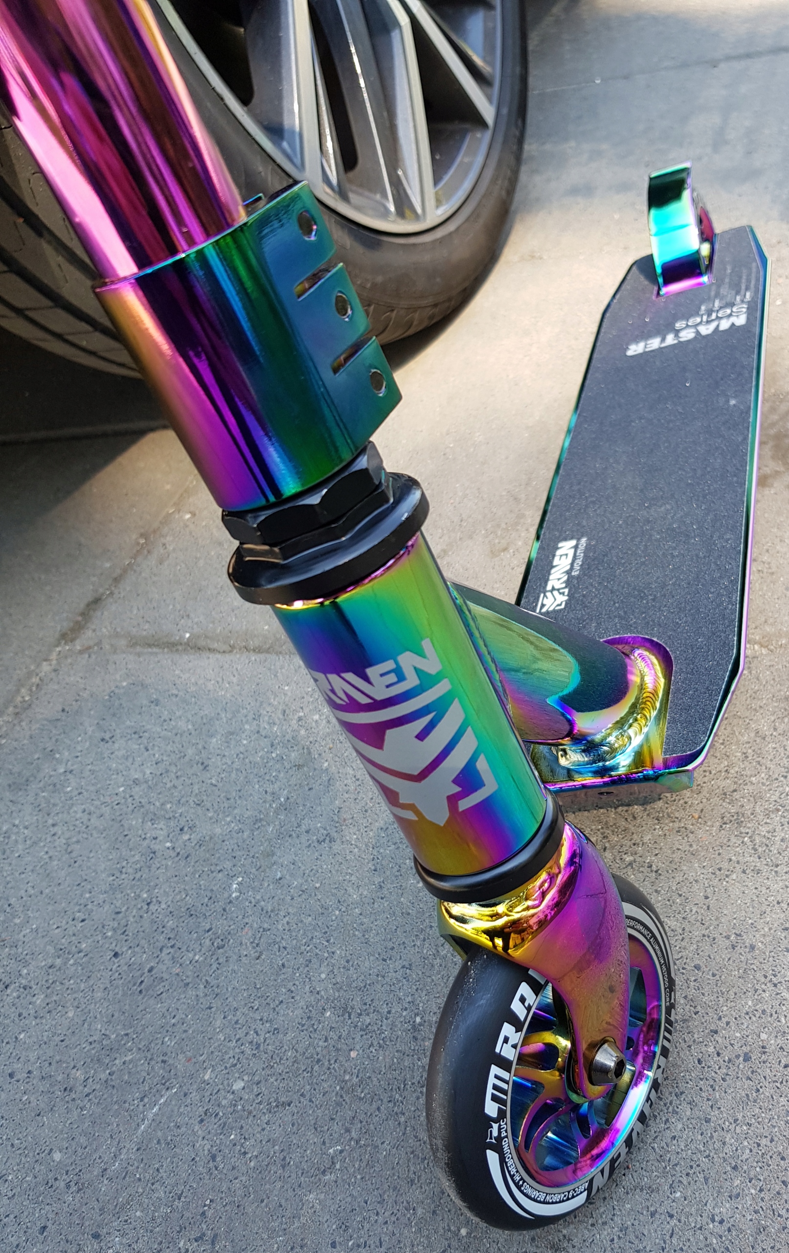 Подключение руля с вилкой самокаты также важна вопрос. Поэтому в нашем Самокаты Raven Evolution Series, была установлена прочная алюминиевая обойма зажата на три винта.