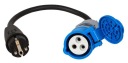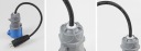 Maksymalne obsługiwane napięcie to 250V, a prąd znamionowy wynosi 32A. Produkty są barwy szaro- niebieskiej i mają gwarantowany stopień ochrony na poziomie IP44. Styki wykonane są z mosiądzu.