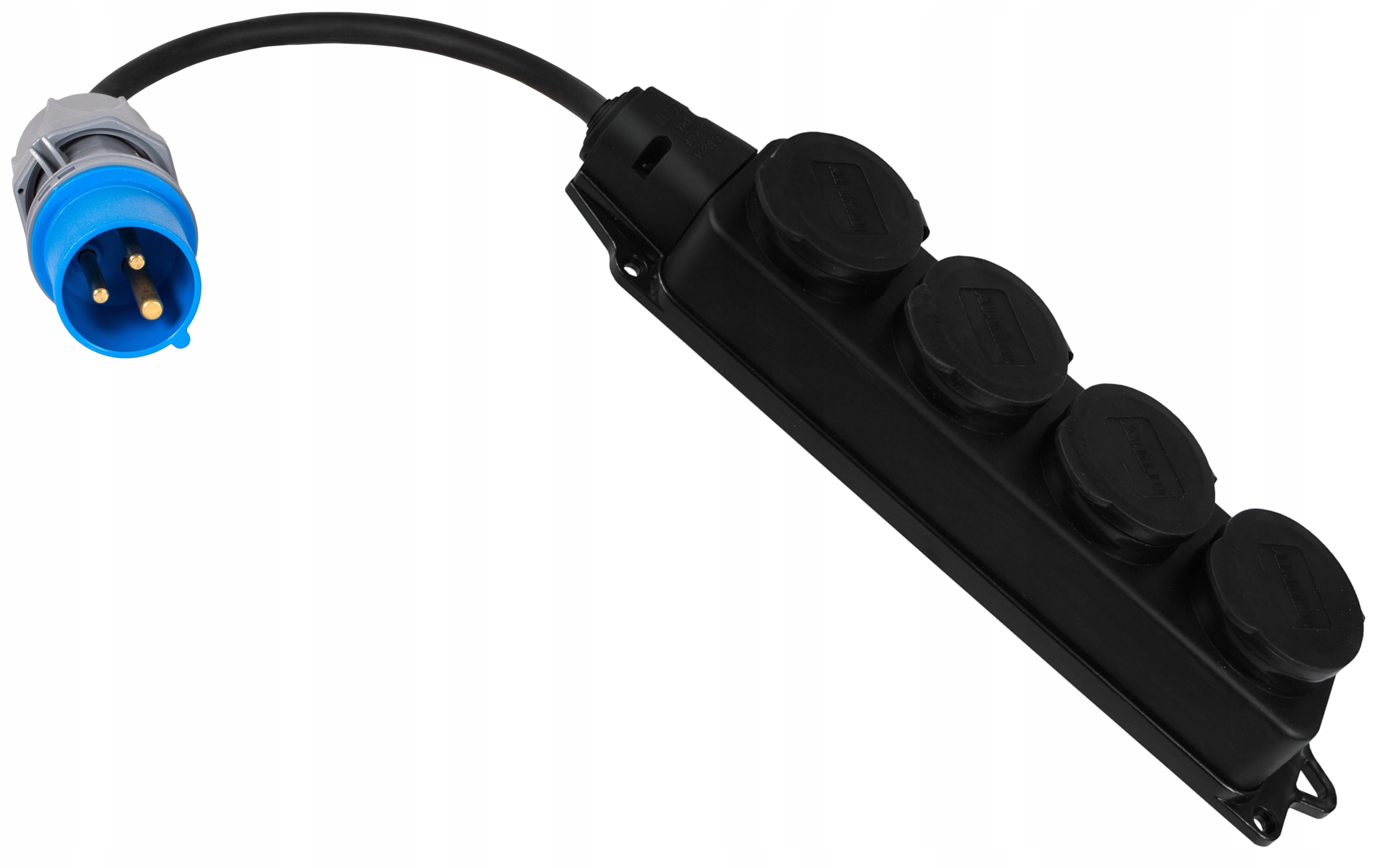 Изготовлен из гибкого шнура в резине общая длина ок. 50 см, 16А исполнение эксплуатации, обеспечивает IP44.