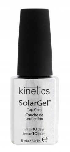 SolarGel - TOP COAT marki Kinetics. препарат придаст ногтям эффект гибридного маникюра. Продукт гарантирует экстремальный блеск и продление срока службы краски (до 10 дней) без использования УФ / светодиодных ламп. Кроме того,, его можно снять с помощью средства для снятия лака.