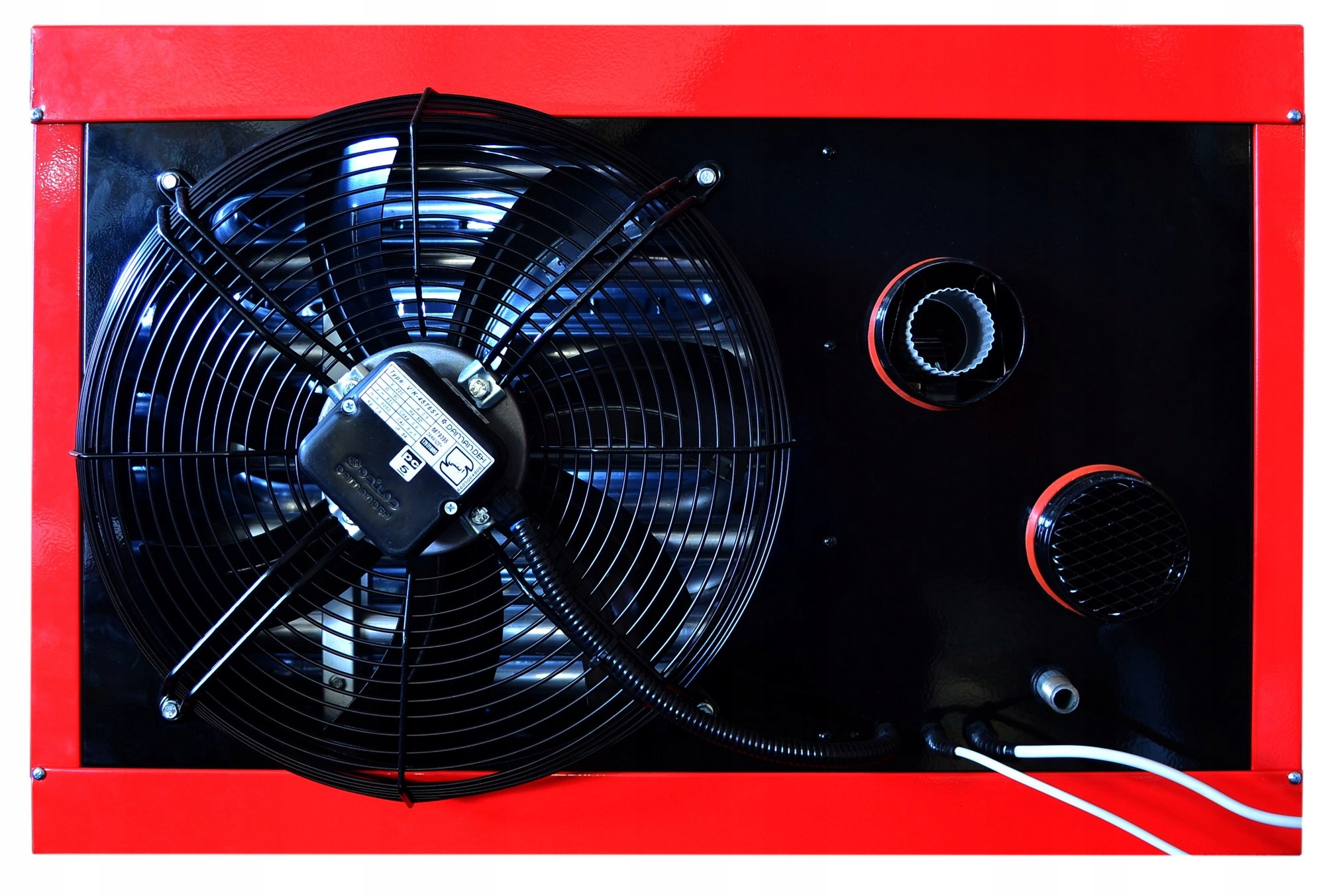 Wentylator odprowadzający spaliny wymusza przepływ gorących spalin przez wymiennik ciepła. Jest odporny na wysoką temperaturę spalin i posiada dużą żywotność. Załącza się automatycznie przez moduł sterujący nagrzewnicy.