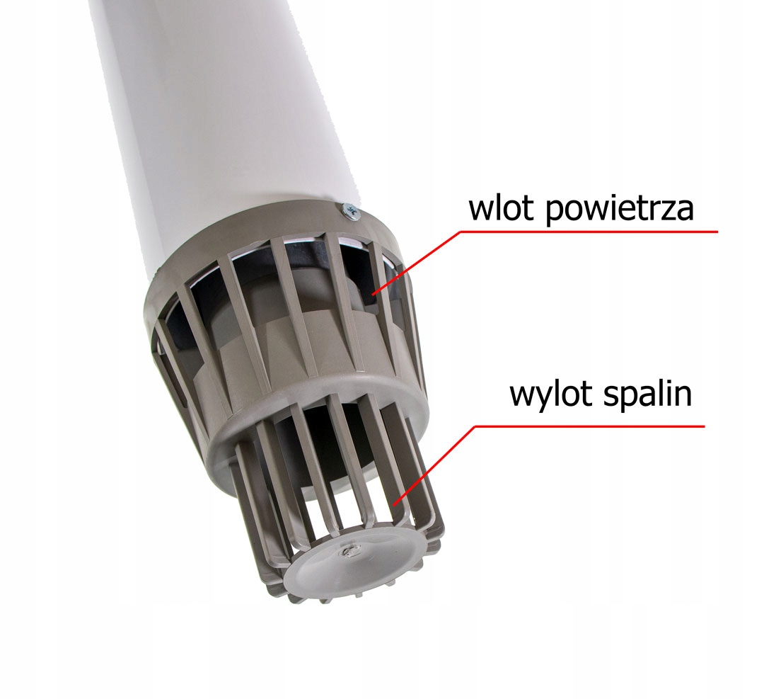 Można dokupić komin wlotu powietrza i wylotu spalin.