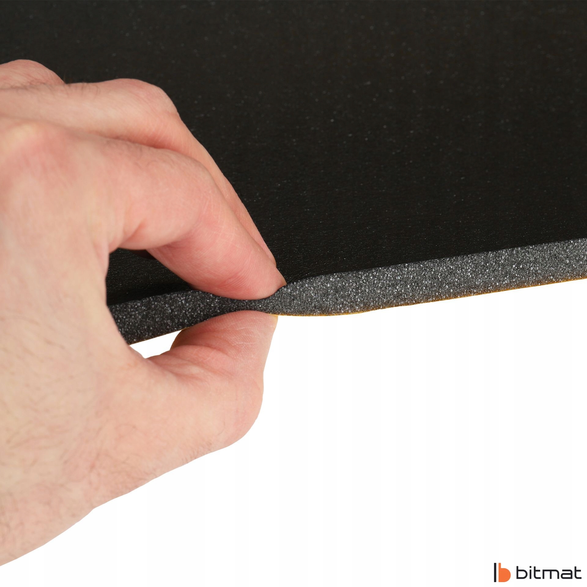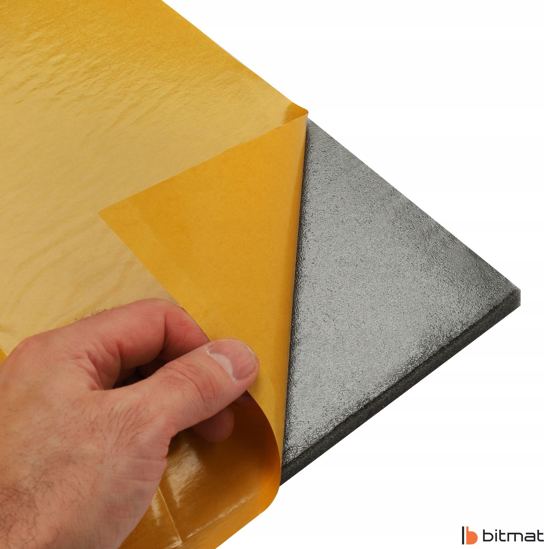 Pianka wyciszająca samoprzylepna z warstwą czarnej folii, która jest odporna na oleje, benzynę oraz wodę.