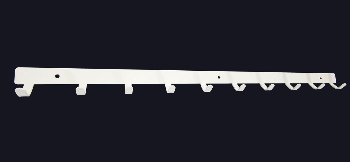 Bardzo trwały i pojemny metalowy wieszak ścienny, który ze względu na swoją prostotę doskonale sprawdzi się w każdym pomieszczeniu. Pomimo niewielkich rozmiarów zmieści naprawdę sporo ręczników, ubrań lub narzędzi. Wytrzymałe haczyki doskonale sprawdzą w każdych warunkach. Wieszak powieszony na ścianę sprawia, że łatwo i nietuzinkowo upiększysz swoje pomieszczenie. Starannie zaprojektowany, wycinany precyzyjnie techniką laserową, malowany proszkowo.