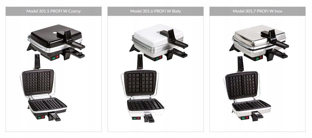 Polecane dla gastronomii. Od modeli standardowych odróżnia je wzbogacenie o łącznik oraz lampki kontrolne. Te dodatkowe elementy ułatwiają pieczenie gofrów. Lampki kontrolne sygnalizują gotowość urządzenia do pracy. Łącznik ogranicza otwieranie górnej pokrywy (kąt 100°), dzięki czemu gofrownica zajmuje mniej miejsca przy pieczeniu. Ponadto modele Profi W oraz Dezal MAXI posiadają włącznik prądu.