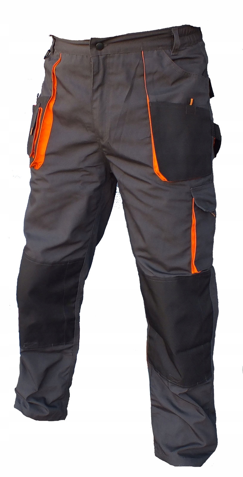 Wysokiej jakości, bardzo wytrzymałe spodnie robocze z dużą ilością kieszeni. Mocne potrójne szwy oraz ryglowanie w miejscach najbardziej narażonych na rozprucie. Na kolanach oprócz wzmocnień wszyta jest kieszeń umożliwiająca zastosowanie piankowych wkładek / nakolanników (dostępne na innej aukcji).