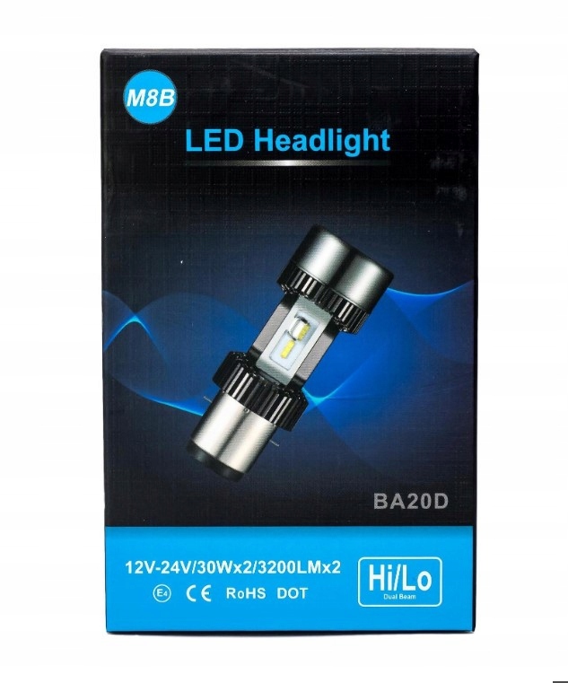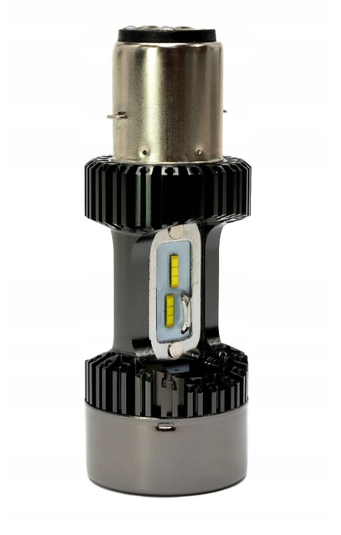 Лампочка BA20D с ближним и дорожным светом благодаря расположению светодиодов, как в традиционной лампочке. Светит в два раза сильнее, чем традиционные, давая свет близко