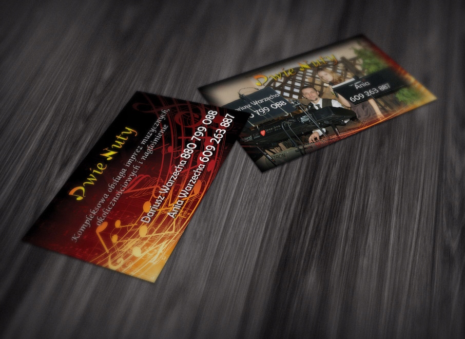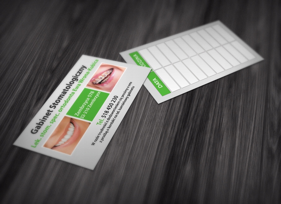 druk pełnokolorowy 4+4, papier kreda 350g, format 9x5 cm lub 8,5x5,5 cm.
