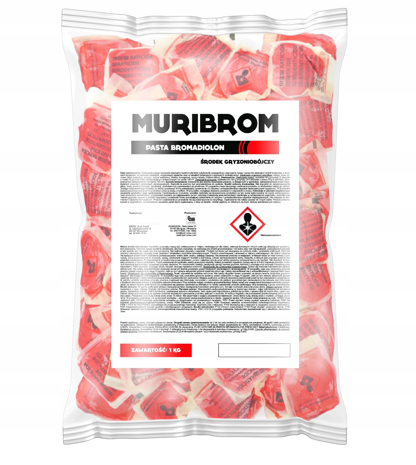 Pasta MURIBROM stosowana nawet w minimalnych ilościach, wykazuje zdolność do znacznego upośledzenia procesów krzepnięcia krwi u szkodników. Wykazuje skuteczne działanie zwalczające szczury śniade oraz wędrowne myszy, pokonując oporność gryzoni na kumarynę i warfarynę. Ten preparat znajduje zastosowanie zarówno wewnątrz, jak i na zewnątrz budynków. Trutkę można używać na terenach otwartych, wokół wysypisk odpadów czy też w kanałach ściekowych przy profesjonalnych zabiegach deratyzacyjnych.