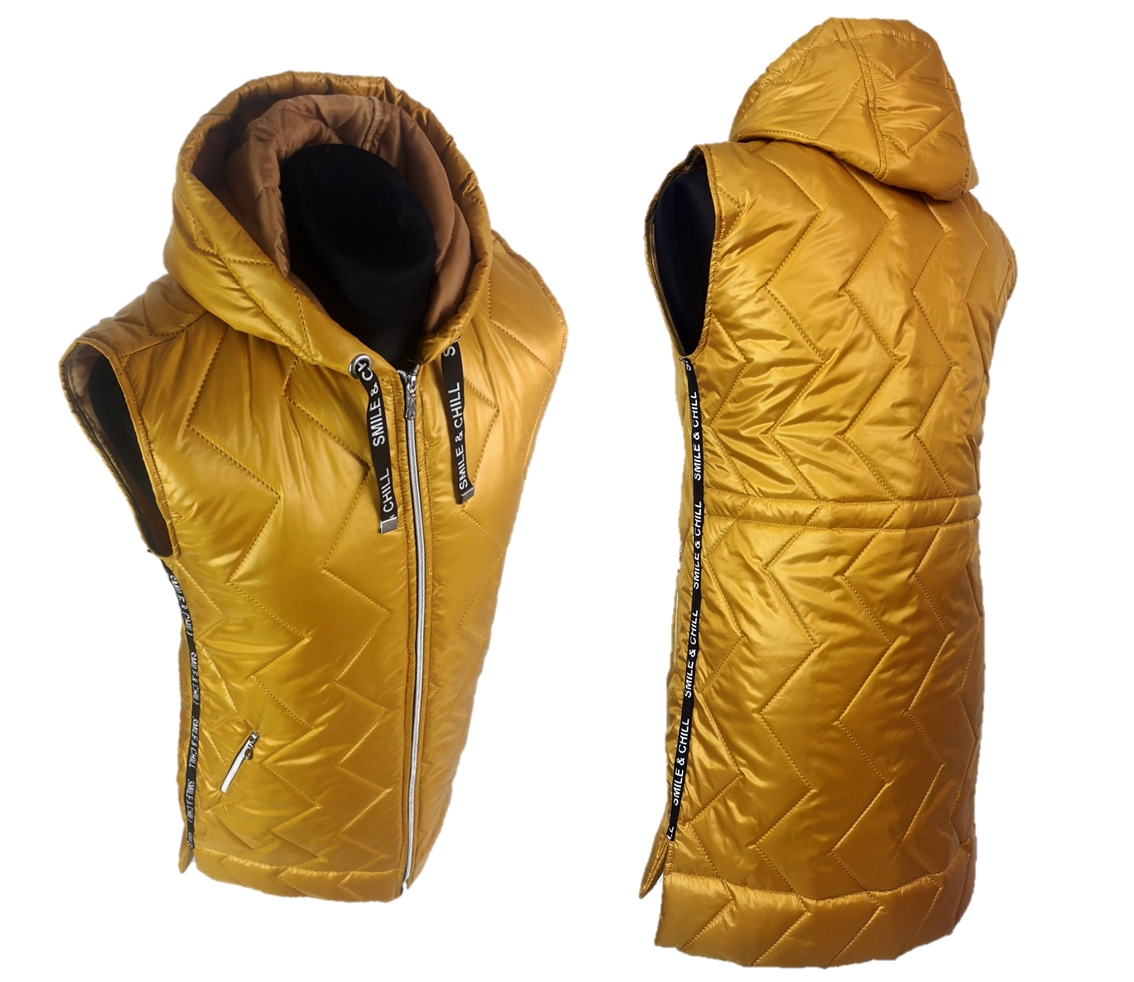 Asymetryczna dłuższa kamizelka pikowana - bezrękawnik.