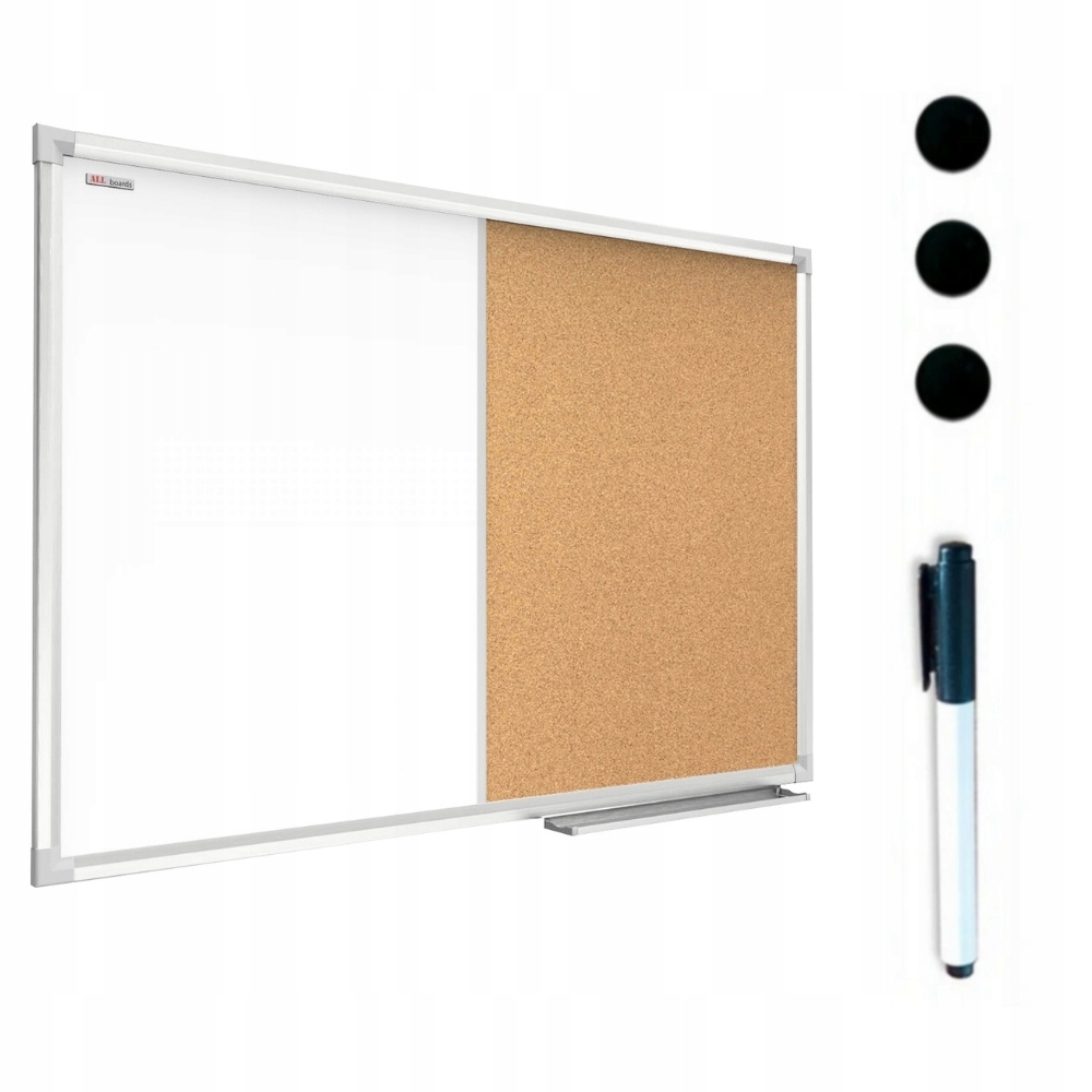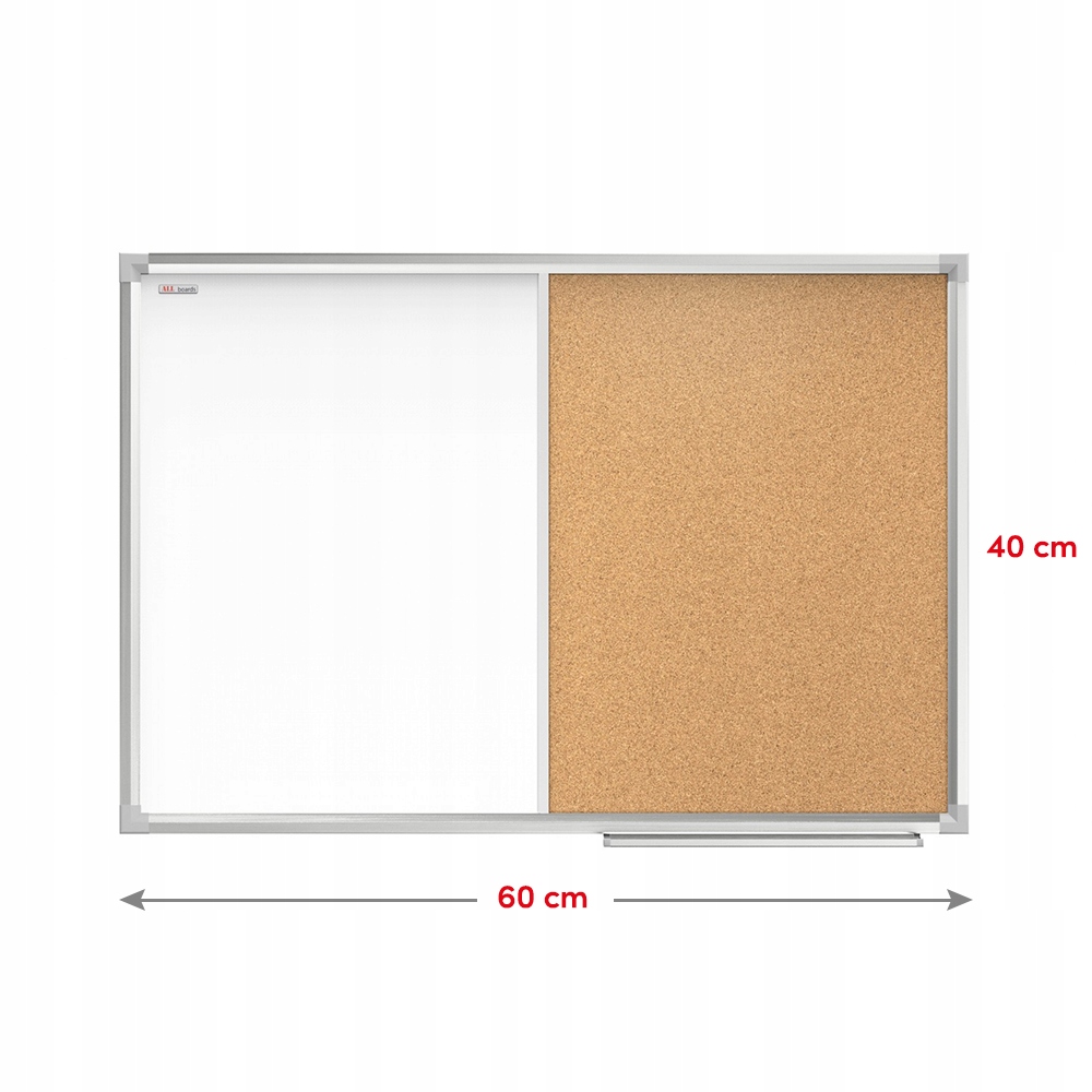 Комби доска сухая стираемая магнитная пробковая алюминиевая рама 60x40