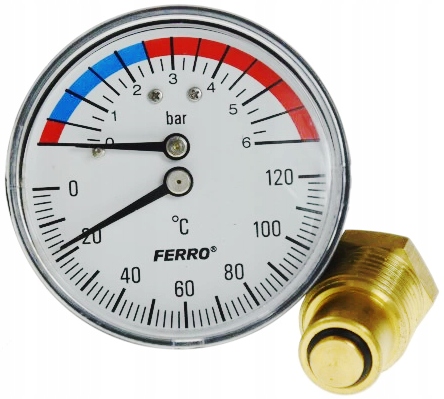 Termomanometr 63mm 1/2" 0-6 bar 120°C axialny (tylny)