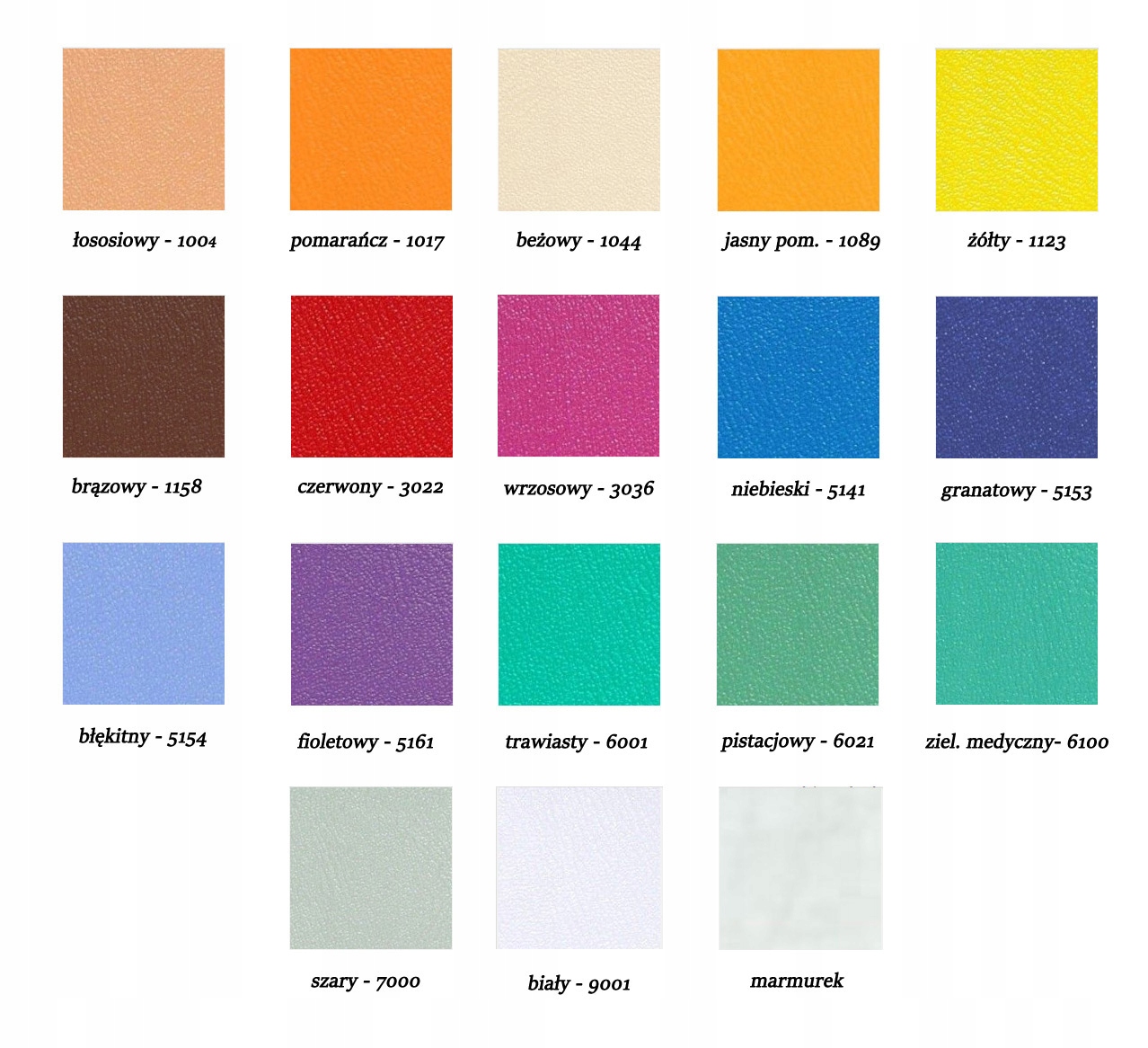 Kozetka wykonana jest z rury stalowej, pokrytej farbą proszkową na kolor biały. Leże tapicerowane jest bezszwowo, gąbką i skajem. Kolor tapicerki jest dostępny w 18 kolorach, z możliwością wyboru. Wyposażeniem standardowym jest uchwyt na rolkę podkładu papierowego oraz stopka umożliwiająca poziomowanie leżanki na nierównym podłożu. Kozetka jest przeznaczona do masażu oraz do różnego rodzaju zabiegów leczniczych w szpitala, sanatoriach, ale również w innych jednostkach służby zdrowia. Kozetka posiada płynną regulację 40° w górę i 40° do dołu.