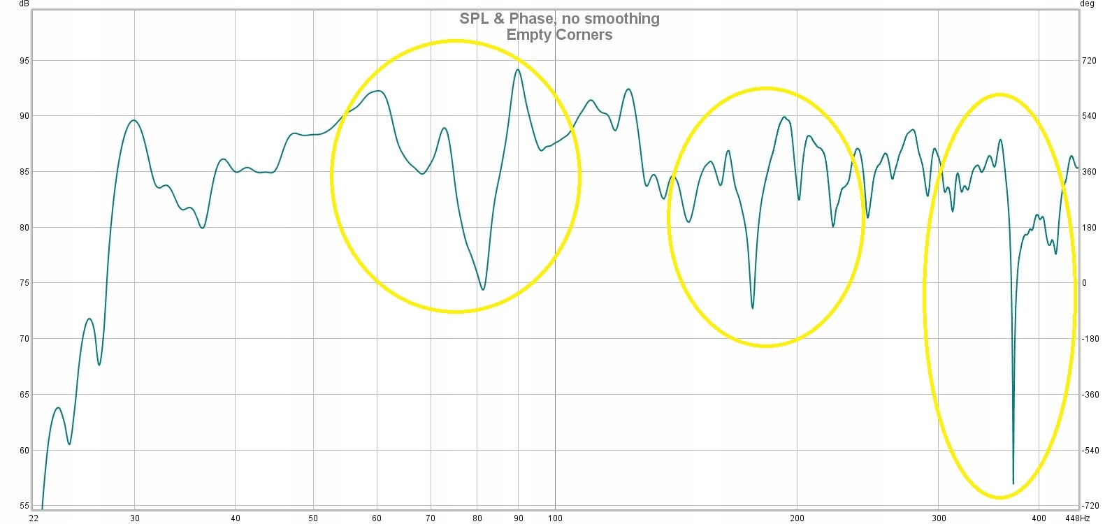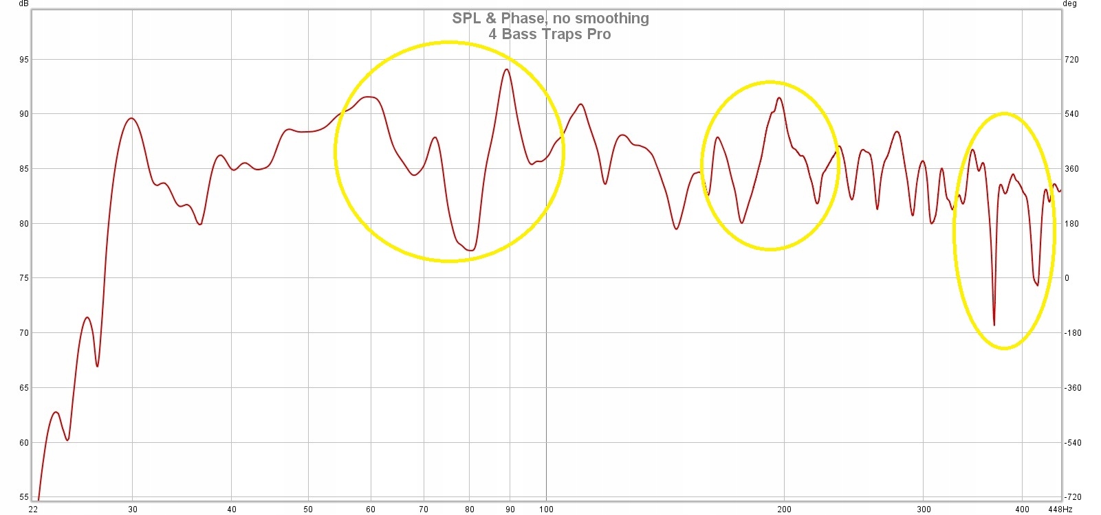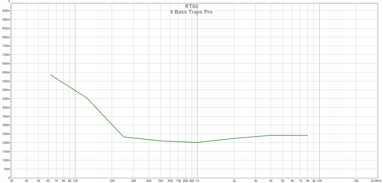 На снимках с проведенных измерений видно влияние применения только 4 басовые ловушки для частотной характеристики комнаты прослушивания. Как вы можете видеть 4 ловушек было достаточно, чтобы значительно выровнять акустику комнаты в нижней и средней полосе и уменьшить реверберацию резонансов на целых 200 мс !